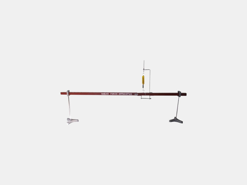 Consisting of two knife edge supports on stands & seasoned wooden bar 180 cm long which is hinged at one point of its length. The dynamometer is with an adjusting screw for restoring line of beam under load conditions. Complete with three sliding weights.