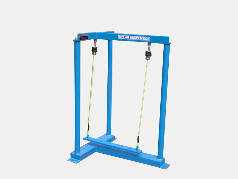 A uniform rectangular section bar is suspended from the pendulum support frame by two parallel cords. Top ends of the cords pass through the two small chucks fitted at the top. Other ends are secured in the Bi-Filar bar. It is possible to adjust the length of the cord by loosening the chucks. The suspension may also be used to determine the radius of gyration of any body