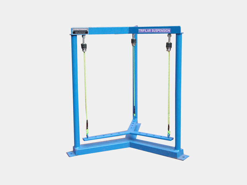 A uniform rectangular section bar is suspended from the pendulum support frame by three parallel cords. Top ends of the cords pass through the two small chucks fitted at the top. Other ends are secured in the tri-Filar bar. It is possible to adjust the length of the cord by loosening the chucks. The suspension may also be used to determine the radius of gyration of any body