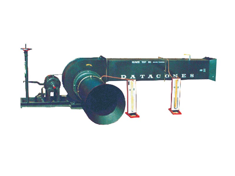 The test rig consists of two pitot tubes provided with two differential manometerto measure pressure of air at the inlet & outlet side of the blower. Energy meter is used to record the power input of motor. Speed of the blower is varied by using reduction pulley or auto transformer.