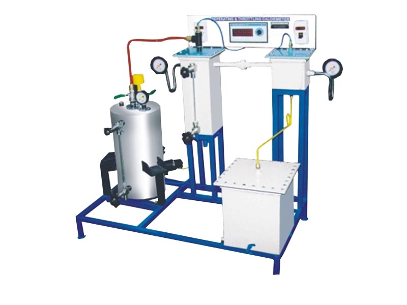 The very wet steam from boiler is feed to the separating calorimeter. The quantity of water thus separated is collected in to the inner chamber provided with a graduated scale which indicated the quantity of water separated. The fairly dry steam moving upwards from the inner chamber is subsequently passed on the throttling calorimeter where it undergoes throttling due to orifice.
