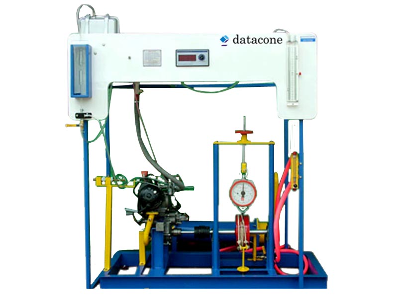 The Setup Consist of single cylinder two stroke petrol engine (BrandNew). The engine is coupled to the rope brake / hydraulic brake / electric / eddy current dynamometer as aloading device. The air box with orifice plate and manometer is provided for measurement of air to the engine. A fuel tank with fuel measuring unit with scale is provided. The shell and tube type calorimeter is provided at exhaust of the engine. Digital temperature indicator with thermocouple is provided for measurement of temperature at eight different locations. A speed is measured by using tachometer. A rotameter is provided for measurement of water flow to the engine and calorimeter. Load on the engine is measured by using dynamometer accessories. Necessary water and air pipe connections are provided. The entire setup mounted on sturdy MS frame with powder coated and good color combination.