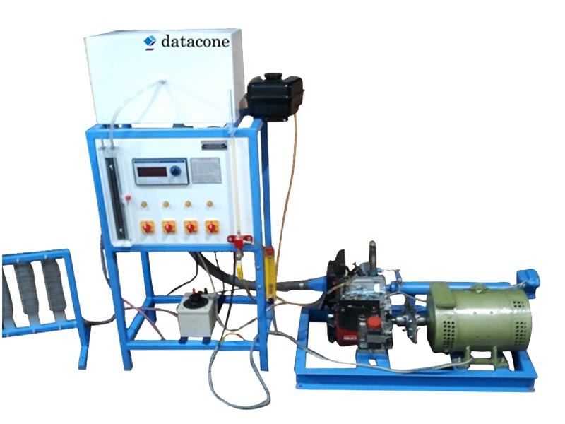 The Setup Consist of single cylinder four stroke petrol engine (BrandNew). The engine is coupled to the rope brake / hydraulic brake / electric / eddy current dynamometer as aloading device. The air box with orifice plate and manometer is provided for measurement of air to the engine. A fuel tank with fuel measuring unit with scale is provided. The shell and tube type calorimeter is provided at exhaust of the engine. Digital temperature indicator with thermocouple is provided for measurement of temperature at eight different locations. A speed is measured by using tachometer. A rotameter is provided for measurement of water flow to the engine and calorimeter. Load on the engine is measured by using dynamometer accessories. Necessary water and air pipe connections are provided. The entire setup mounted on sturdy MS frame with powder coated and good color combination.