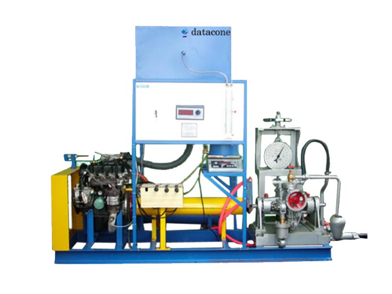 The Setup Consist of Four cylinder four stroke petrol engine (BrandNew). A Propeller shaft is used to couple the engine to the rope brake / hydraulic brake / electric / eddy current dynamometer as a loading device. The air box with orifice plate and manometer is provided for measurement of air to the engine. A fuel tank with fuel measuring unit with scale is provided. The shell and tube type calorimeter is provided at exhaust of the engine. Digital temperature indicator with thermocouple is provided for measurement of temperature at eight different locations. A speed is measured by using tachometer. A rotameter is provided for measurement of water flow to the engine and calorimeter. Load on the engine is measured by using dynamometer accessories. Necessary water and air pipe connections are provided.The cylinder power it cut off using switches The entire setup mounted on sturdy MS frame with powder coated and good color combination.