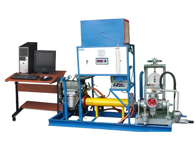 The Setup Consist of Four cylinder four stroke petrol engine (BrandNew). A Propeller shaft is used to couple the engine to the rope brake / hydraulic brake / electric / eddy current dynamometer as a loading device. The instrumentation consist of combustion pressure sensor , rotary encoder, Temperature transmitters, differential pressure transmitters, load transmitter , flow transmitter with ADC and DAC Cards. A Lab view software is used for the data acquisition and analysis. The air box with orifice plate and manometer is provided for measurement of air to the engine. A fuel tank with fuel measuring unit with scale is provided. The shell and tube type calorimeter is provided at exhaust of the engine. Digital temperature indicator with thermocouple is provided for measurement of temperature at eight different locations. A speed is measured by using tachometer. A rotameter is provided for measurement of water flow to the engine and calorimeter. Load on the engine is measured by using dynamometer accessories. Necessary water and air pipe connections are provided. The entire setup mounted on sturdy MS frame with powder coated and good color combination.