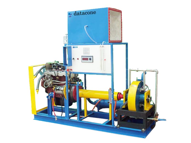 The Setup Consist of Fourcylinder four stroke Diesel engine (BrandNew). The engine is coupled to the rope brake / hydraulic brake / electric / eddy current dynamometer as aloading device. The air box with orifice plate and manometer is provided for measurement of air to the engine. A fuel tank with fuel measuring unit with scale is provided. The shell and tube type calorimeter is provided at exhaust of the engine. Digital temperature indicator with thermocouple is provided for measurement of temperature at eight different locations. A speed is measured by using tachometer. A rotameter is provided for measurement of water flow to the engine and calorimeter. Load on the engine is measured by using dynamometer accessories. Necessary water and air pipe connections are provided. The entire setup mounted on sturdy MS frame with powder coated and good color combination.