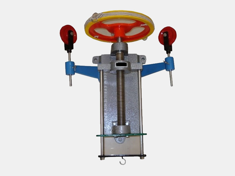 Consists of a self contained wall bracket with a steel screw of 3 cm diameter. The screw has 5 T. P. I. ‘V’ type pitch complete with large force pulley, two jokey pulleys, hooks and cords. Weights are not included.