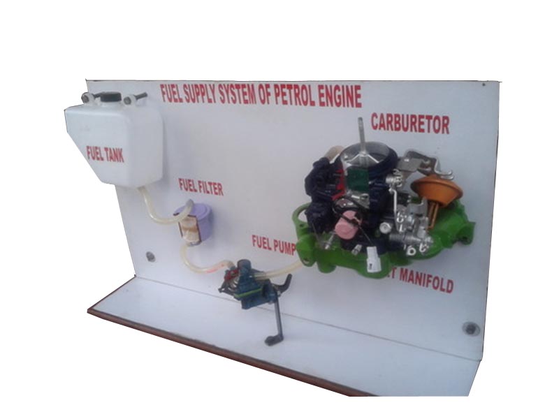 This model is made out of original used parts , will be suitably sectioned and arranged to demonstrate the internal construction details showing the system. It Consist of fuel tank, Carburetor ,fuel pump, filter. The model will be suitably painted and the entire model is mounted on a sturdy ms frame with powder coated.