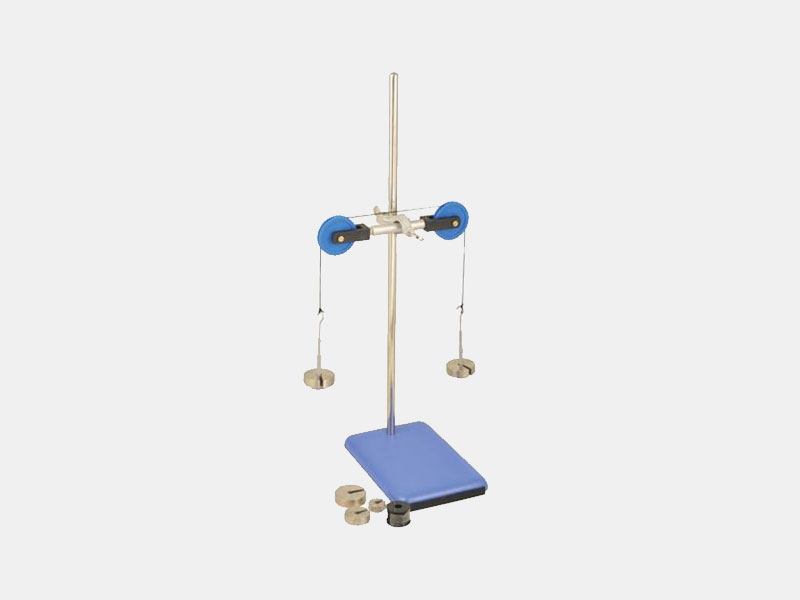 Consists of two low-friction pulleys of 50 mm dia. mounted on a metal rod. Supplied complete with Support rod & base 5” x 8”, Slotted weight one each of 20g, 50g & 3 of 100g, 2 pcs. Mass hanger, 1 bosshead and nylon thread.