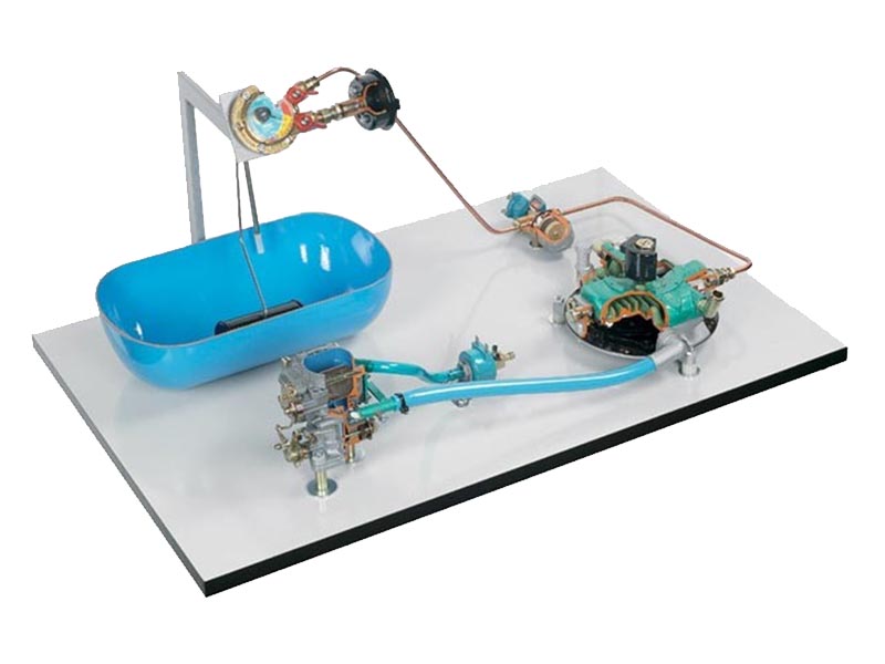 The model is made out of original used part. It consist of LPG Tank , level gauge, solenoid valve and carburetor. The painting is carried out in such way that different color is used for different component such as identification of sectioned area ,different mechanisms etc . The model is mounted on sturdy frame.