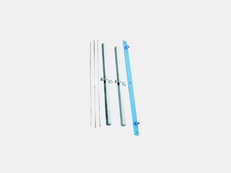 Wire under test is connected to two brass rods 30 cm long at their mid points, complete with three test wires and with end screws. Rods are suspended from hooks fitted on a steel plate.