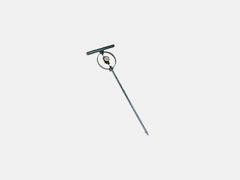 Consists of a sturdy handle under. Which is fixed a sensitive proving ring. An extension piece is fixed to the bottom of the proving ring and carries a detachable penetration cone at its tip.