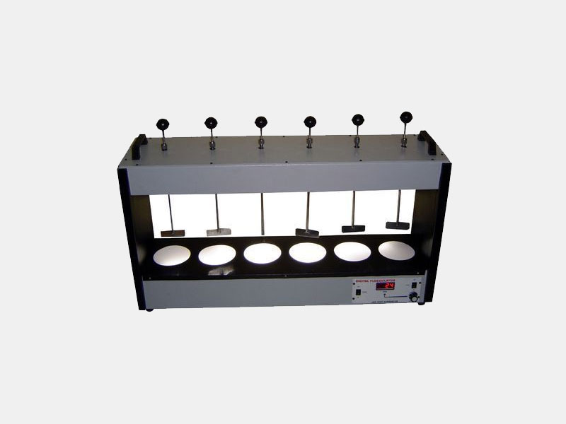 Continuous duty geared motor drive with built in speed control. Gear chain to achieve same speed in all multiple spindle . S.S. stirring shaft with adjustable height , S.S propeller. Tube light for illumination. Unit supplied without glass beakers.