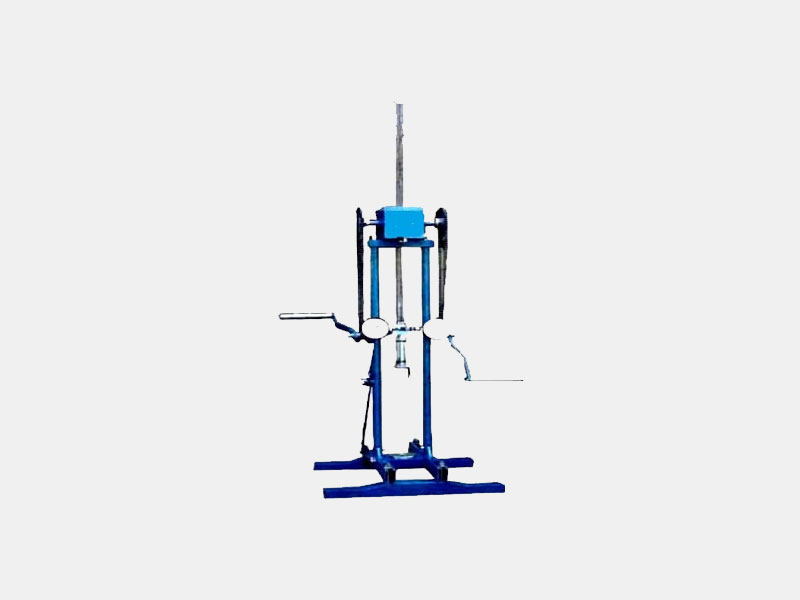 The drive is by means of a rack and pinion manually through a gearing arrangement. The gear box and pinion are fixed on two handles, sprockets and chain arrangement. The movement of the rack is guided by a bracket (attached to the rack) and two pillars. The penetration resistance i.e. the pressure is indicated on hydraulic gauges through a hydraulic measuring head.Two pressure gauges