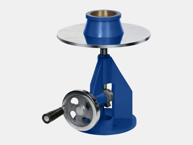 It is used for determining the flow of cement concrete. Consists of a steel table top 76.2cm (30 inch. Dia.) Finely machined. The integral cast ribs are designed for support and strength. The stand is fabricated out of cast iron and is of study construction. Holes for mounting in foundations are drilled in the base plate. The ground and hardened steel cam is designed to fit and drop the table by12.5mm. The hand wheel makes it simple to operate the table.