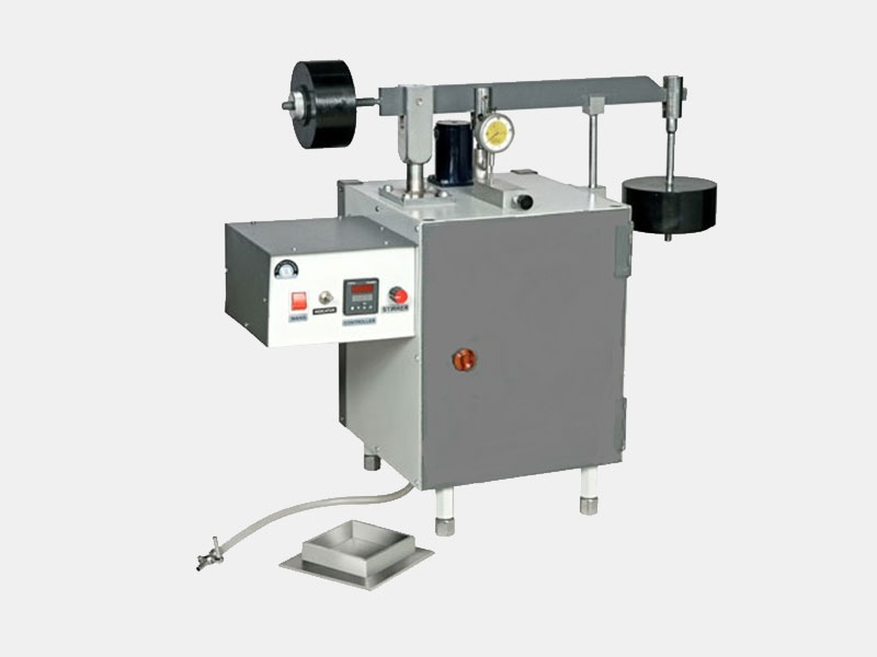 For determining the hardness number of Mastic Asphalt for flooring. It consist of an internally insulated cabinet to the base of which is fitted a water bath having two taps. The bath is heated by an immersion heater and the temperature is controlled with the thermostat at 35° +/- 0.5° C. A 6.5mm dia. pin is loaded on the specimen by means of a lever to give a 31.7 Kg weight. A dial gauge 0.01 x 25 mm is provided to record the penetration of pin into the specimen