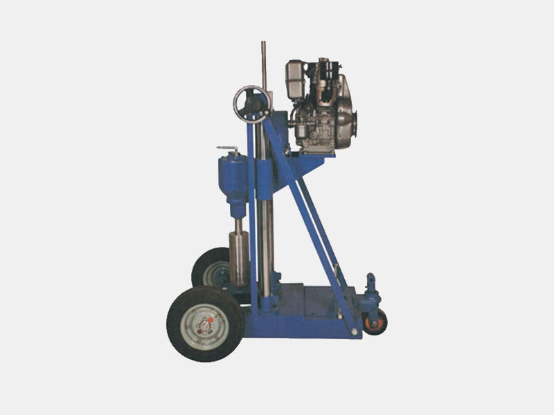 The Pavement Core Drilling Machine. Diesel engine powered road building drill has been designed specifically for the purpose of drilling test cores from or holes in, Roads, Airport Runways, Bridges etc. The Machine comprises of two vertical support columns, which carry the Drill head/Engine assembly with the help of screwed spindle. The 5 HP diesel engine with pulley mechanism works with minimum vibrations. The double precision bit advances with screwed spindle, which provides a constant, accurate drill pressure, minimum core chipping & long bit life. The complete assembly is supplied on a rigid metal base with leveling facility and is suitable for vertically down coring applications only.
