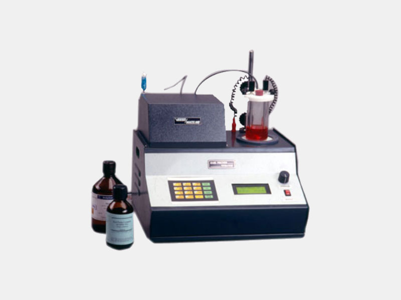 A latest type of karl fischer titrator in which the burretes and also the conventional syringe and plunger arrangement is eliminated . The K/F reagent added by the dispenser is directly read on the digital readout upto 0.01ml . As the reagent is added continuously , the process of periodic refilling of syringe is eliminated , minimize the chances of error. The motorized dispenser stops instaneously on reaching the end point . The end point is indicated by an audio alarm and red lamp . The digital readout facilitates quick evaluation of titor factor and accurate estimation of moisture contents in the sample .