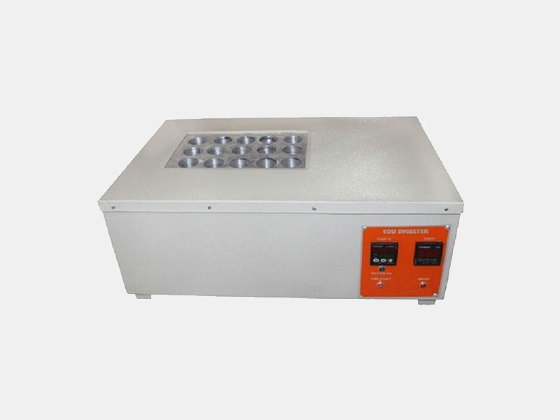 Process water and more . Outer cabinet made of mild steel duly coated . Aluminium block with holes dia 40mm X 80mm X Depth is used to hold ( 5 x 3) = 15 nos COD tubes . Aluminium block is heated to maintain temp upto 1800c . eith timer upto 120 minutes. With alarm supplied without tubes condeser.
