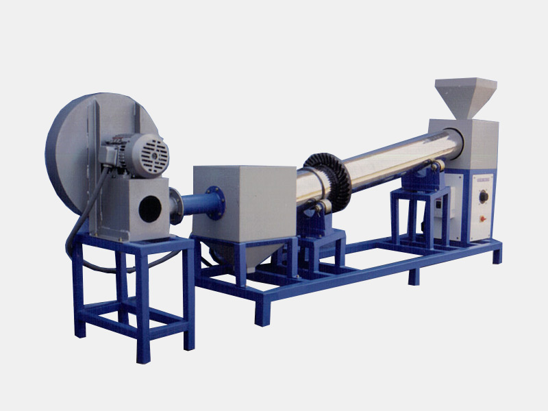 The apparatus consists of glass shell with roller supports at the two ends & a gear connected to the motor. Wet feed is fed through the chute & dried product outlet point. Air is supplied by a blower. By pass valve & flow control blower enable variation of air flow rate through the drier. heating arrangement for air heating is provided measures air flow rate. Thermometer measures the temperature of wet feed & dried product. Wet & dry built thermometers enable measurement of air condition at inlet to & outlet from the counter flow rotary drier. The rotational speed of shell is evaluated by measuring the speed of rotation of motor & the gear ratio or by visual observation of a colored water on the shell & by turning the number of revolution with the help of s stop clock.