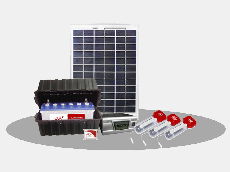 The lighting system is designed to operate 3 to 4 hours a day. Homelight is a DC operated wall mountable indoor lighting luminary. It consists of a compact Fluorescent Lamp (CF Lamp) and a high frequency inverter. High frequency inverter offers high efficiency, more light output and long service life to the CF Lamp. The indoor lighting luminaries are available in different lamp wattages and models.