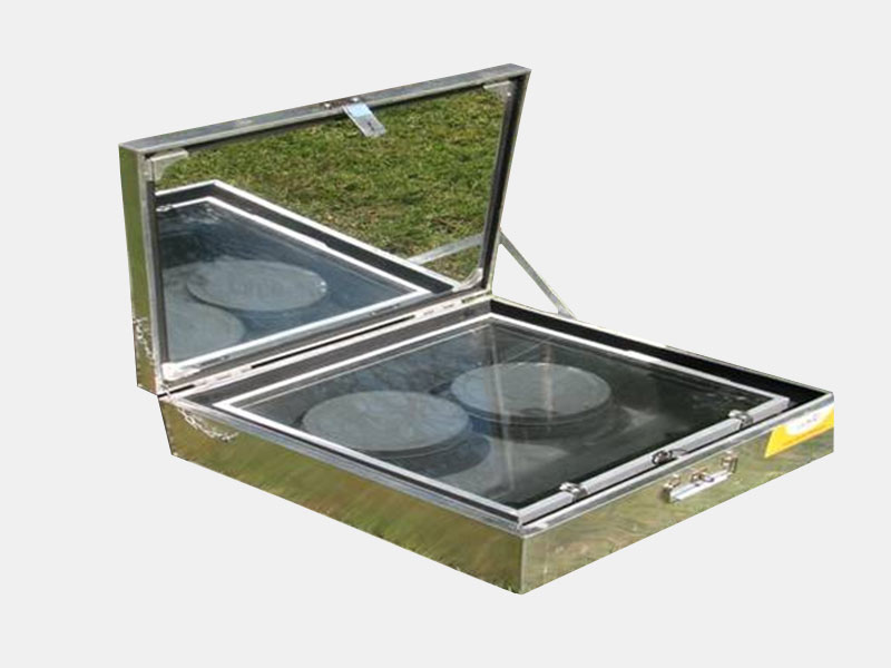 A solar cooker is a device which uses the energy of direct sunlight to heat, cook or pasteurize food or drink. A box cooker has a transparent glass or plastic top, and it may have additional reflectors to concentrate sunlight into the box.. One or more reflectors of shiny metal or foil-lined material may be positioned to bounce extra light into the interior of the oven chamber .