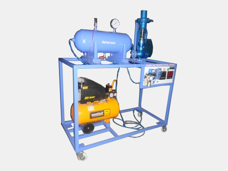 The system comprises of Pneumatic actuated diaphragm control valve , Pressure transmitter, I/P Convertor , PID controller and air filter regulator. The set point is set on the PID Controller. The output from the pressure transmitter is given to the PID controller. The output from the PID controller is given to the I/P Convertor. The I/P convertor controls the flow of air to Pneumatic actuated diaphragm control valve which ultimately controls the pressure of air in the tank. A suitable capacity compressor is provided for supply of air. The whole setup mounted on sturdy iron frame , powder coated with good color combination.