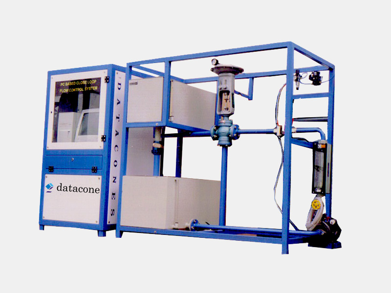 The system comprises of Pneumatic actuated diaphragm control valve , wheel flow transmitter, I/P Convertor , ADC and DAC card , air filter regulator. A Labview / Scada software is used for the data acquisition, analysis and controlling. The I/P convertor controls the flow of air to Pneumatic actuated diaphragm control valve which ultimately controls the flow of water through the valve. A sump tank with centrifugal pump is provided. A rotameter is used to measure the flow the system. The whole setup mounted on sturdy iron frame, powder coated with good color combination.