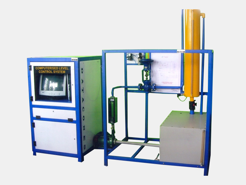 The system comprises of Pneumatic actuated diaphragm control valve , Level transmitter, I/P Convertor , ADC and DAC card , air filter regulator. A Labview / Scada software is used for the data acquisition, analysis and controlling. The I/P convertor controls the flow of air to Pneumatic actuated diaphragm control valve which ultimately controls the flow of water through the valve which maintans the level in water tank. A sump tank with centrifugal pump is provided. A rotameter is used to measure the flow the system. The whole setup mounted on sturdy iron frame, powder coated with good color combination.