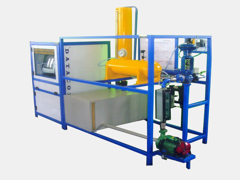 The system comprises of Pneumatic actuated diaphragm control valve , Pressure , Level , Flow , Temperature transmitter, I/P Convertor , ADC and DAC card , air filter regulator. A Labview / Scada software is used for the data acquisition , analysis and controlling. The I/P convertor controls the flow of air to Pneumatic actuated diaphragm control valve which ultimately controls the process variables of the system. A sump tank with centrifugal pump is provided. A rotameter is used to measure the flow the system. A suitable capacity compressor is provided The whole setup mounted on sturdy iron frame , powder coated with good color combination.