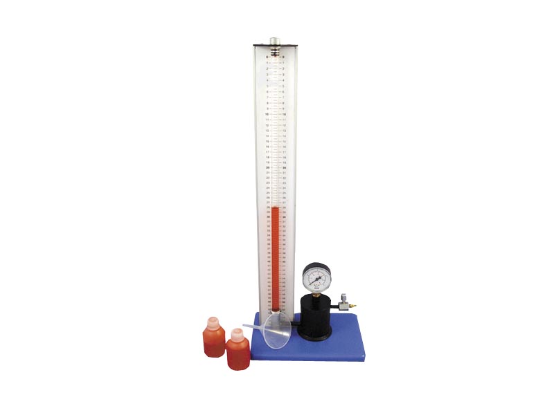 The apparatus comprises a thick walled, wide-bore glass tube mounted vertically in front of a graduated scale with closed end of the tube at the top and open bottom end secured tightly on the thick-walled metal tube with O-ring to get leak-proof joint.