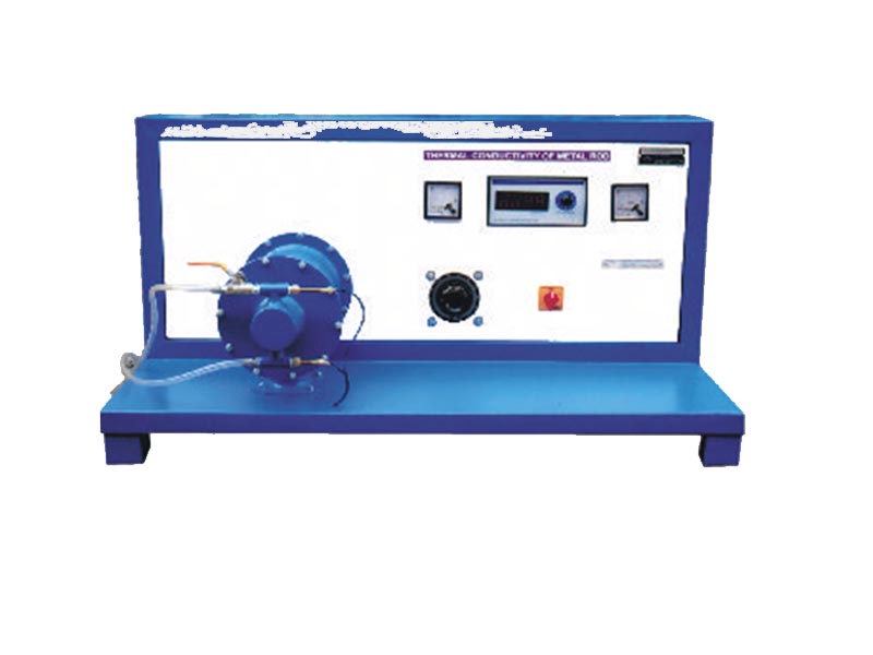 The experimental setup consists of the metal bar, one end of which is heated by an electric heater while the other end of the bar projects inside the cooling water jacket. The middle portion of the bar is surrounded by a cylindrical shell fitted with the asbestos insulting powder. The temperature of the bar is measured at 8 different sections The heater is provided with a dimmer stat for controlling the heat input. Water under constant head condition is circulated through the jacket & its flow rate & temperature rise are noted.