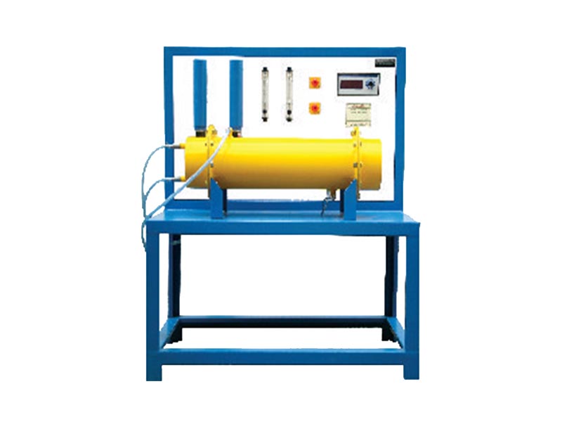 The apparatus consists of a Shell and Tube type spiral tube heat exchanger. The hot fluid is hot water which is obtained from an electrical geyser & it flows through the coiled tube. While the cold fluid is cold water, flowing through the shell. The flow rate of hot and cold water are measured by using rotameter. Temperatures at inlet and outlet are measured by using thermocouples and temperature indicator.