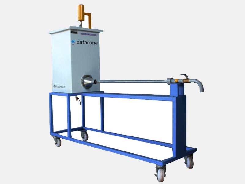 The experimental setup consists of a tank containing water & small tank containing dye. The water supply tank is fitted with horizontal transparent glass tube with flow control valve. A syringe with flexible tube from dye supply tank, fixed in the glass tube. By adjusting the flow control valve of the glass tube, types of flow can be observed. This system is complete closed circuit type and easy to move due to wheels.