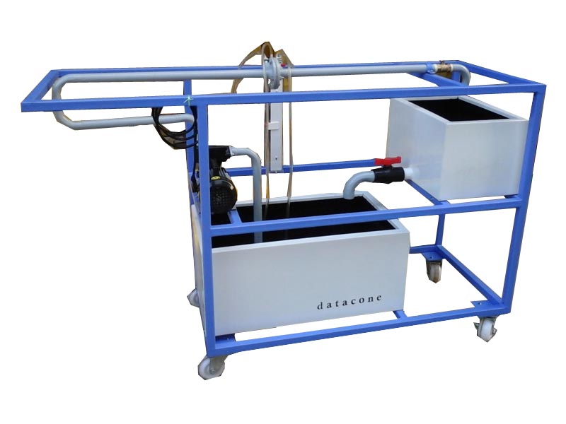 The experimental unit consists of Nozzle meter fixed in the pipe. a water sump tank with self-priming monoblock centrifugal pump. The flow of water can be controlled by a valve. A measuring tank is provided for measurement of discharge of water through the Section. The Differential Pressure across the Nozzle meter is measured by using U tube Manometer. This system is complete closed circuit type and easy to move due to wheels.