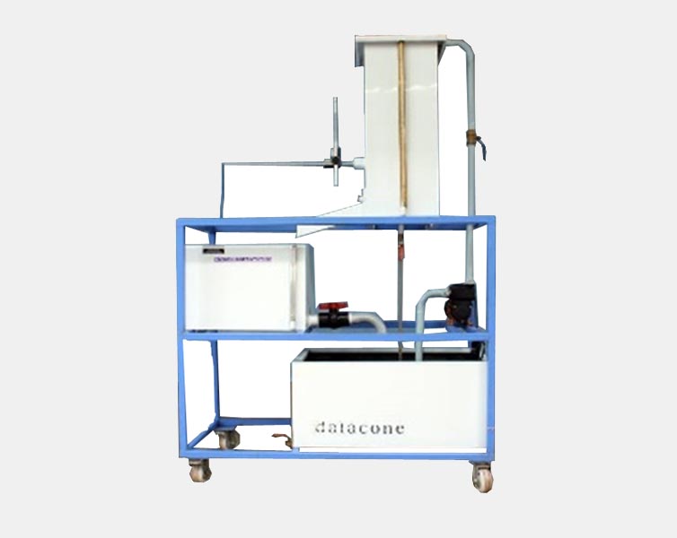 The experimental unit consists of an overhead tank with scale, at the bottom of which orifice or mouthpiece can be fixed. a water sump tank with self-priming monoblock centrifugal pump. The flow of water can be controlled by a valve.. A measuring tank is provided for measurement of discharge of water through the Section. A Horizontal and vertical scale is fixed for measurement of flow of jet. This system is complete closed circuit type and easy to move due to wheels.