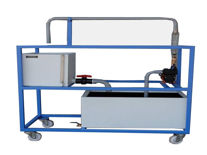 The experimental unit consist of Rotameterfixed in the pipe. a water sump tank with self-priming monoblock centrifugal pump. The flow of water can be controlled by a valve.. A measuring tank is provided for measurement of discharge of water through the Section.This system is complete closed circuit type and easy to move due to wheels.