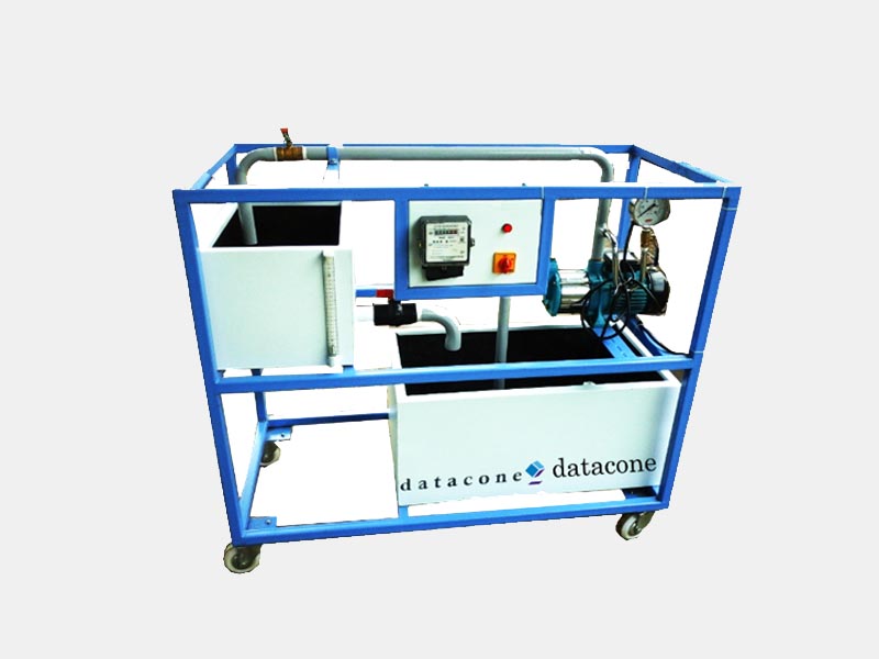 The apparatus consists Multistage Centrifugal pump of suitable capacity.Suction and discharge pressure are measured by using vacuum and pressure gauge respectively.Flow through pump is controlled by using discharge control valve.Discharge though the pump is measured by using measuring tank. Sump Tank of suitable capacity is provided. Speed of the pump is varied by using autotransformer and measured by using tachometer.Energy meter is provided for measurement of power consumption of pump.This system is complete closed circuit type and easy to move due to wheels.