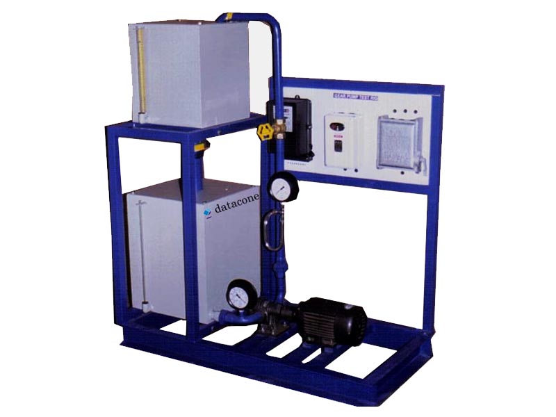 The apparatus consists gear pump of suitable capacity.Suction and discharge pressure are measured by using vacuum and pressure gauge respectively.Flow through pump is controlled by using discharge control valve.Discharge though the pump is measured by using measuring tank. Sump Tank of suitable capacity is provided..Energy meter is provided for measurement of power consumption of pump.This system is complete closed circuit type