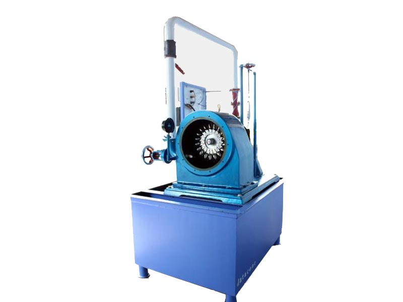 The unit consist of casing with large circular transparent window kept at the front for visual inspection of the impact of the jet on buckets a bearing pedestals, rotor assembly of shaft, runner and break drum all mounted on suitable sturdy cast iron base plate.. A rope brake arrangement is provided to load the turbine. The input to the turbine can be controlled by adjusting the spear position by means of hand wheel and suitable link mechanism by pressure and vacuum gauge. The discharge trough the turbine is measured by using venturimeter with differential manometer. Speed of turbine is measured by using tachometer. The entire unit is powder coated with good color combination.