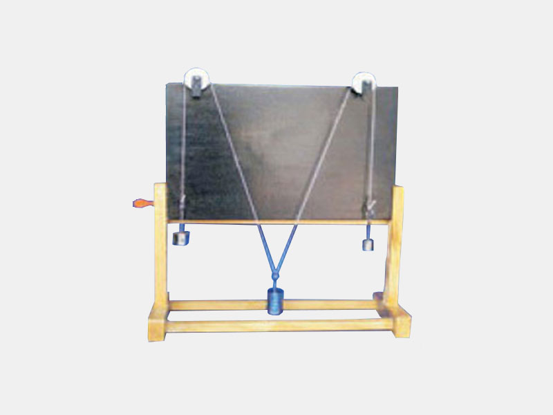 This apparatus consists of wooden board made of wood & fixed within a wooden slotted frame of overall size 75 x 70 cm 4 friction less pulleys are adjustable in the slots of frame & frame is provided with suitable arrangement for fixing it to a wall. The unit is complete with 4 hangers & 16 iron nickelled slotted weights of 50 gm each.