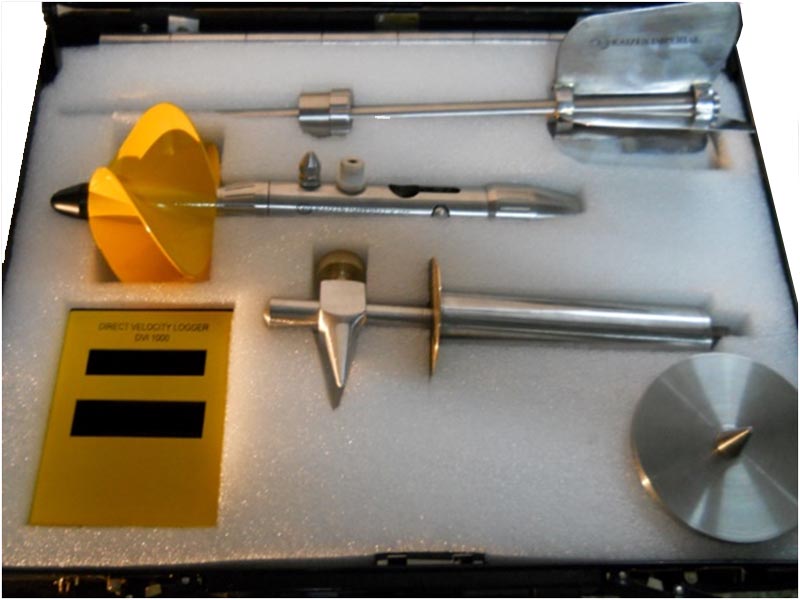 Water Current Meter Complete Set. This current meter is suspended in the water using a cable with sinking weight or wading rod and will accurately measure stream flow velocities.