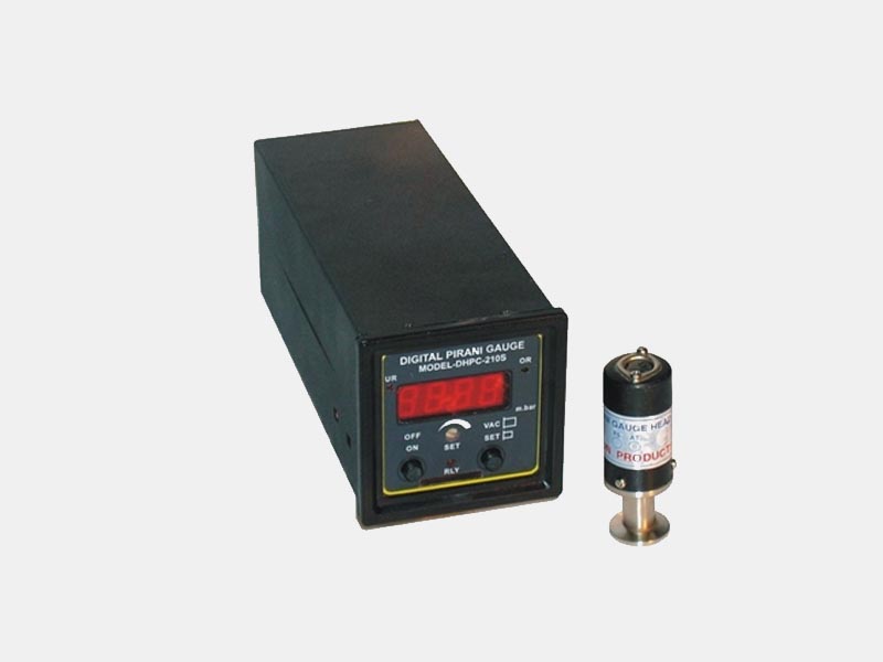 The Pirani gauge consists of a metal filament suspended in a tube which is connected to the system whose vacuum is to be measured. Connection is usually made either by a ground glass joint or a flanged metal connector, sealed with an o-ring. The filament is connected to an electrical circuit from which, after calibration, a pressure reading may be taken. It displays vacuum measurements based on thermal conductivity of air or nitrogen.