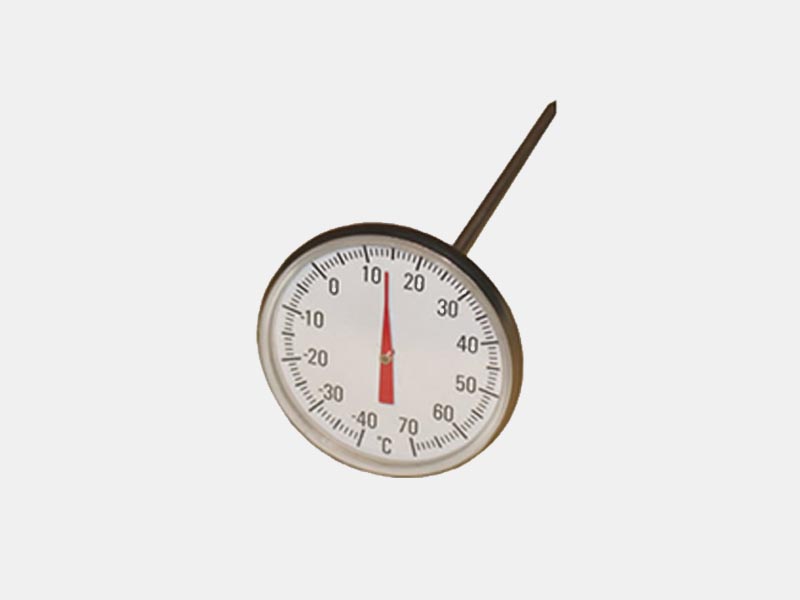 A bimetal thermometer uses a bimetal spring as temperature sensing element. This technology uses a coil spring made of two different types of metals that are welded or fastened together. These metals could include copper, steel or brass as long as one has low heat sensitivity while the other metal has high heat sensitivity. Whenever the welded strip is heated, the two metals change length based on their individual rates of thermal expansion. Since the two metals expand to different lengths, the bimetallic strip is forced to bend or curl towards the side with a lower coefficient of thermal expansion. The movement of the strip is used to deflect a pointer over a calibrated scale which then indicates temperature to the user.