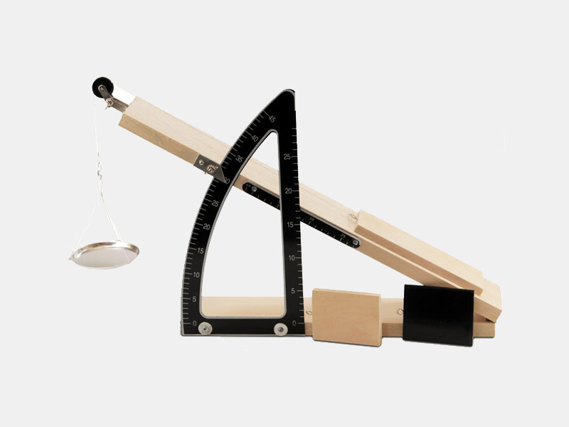 Consist of a 15 x 60 wooden board with glass top hinged on iron base to which a sector with graduated arc & vertical scale is provided. The plane may be clamped at any angle upto 45 degrees. A 5 cm dia. Friction less pulley is attached to the end by means of a clamp adjustable to any necessary position complete with brass roller, pan & cart, but without weights.